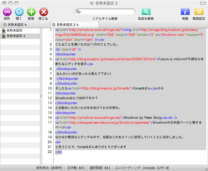 なかなか軽快なエディタなので、当面はこれをメインに使用していくことに決定しました。
