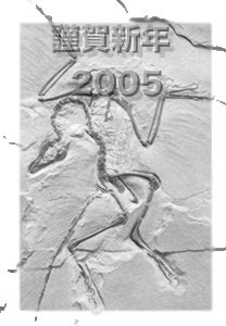 今年は酉年と言うことで、ふと思ったのが"始祖鳥"を図案に使おうと思いつく。Googleでイメージ検索をして、始祖鳥の化石の写真を探し、それをPhotoStudioで加工した後、"謹賀新年"の文字を浮かせて完成。AppleWorksでレイアウトを整えて完成。