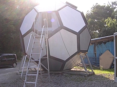 サッカーボール型住宅【バリア】・木造住宅・鉄骨住宅・移動式住宅・ローコスト住宅・キミドリ建築内部がどうなっているかは気になるところですが、サイトのイラストによると結構広いようです。バリアとは、自社が独自で開発(国際特許出願中)したサッカーボール型住居です。子供の頃に遊んだサッカーボールが、夢のように大きく膨らんで、人の住める家となって、今ここに誕生致しました。海にも浮かび、救助船にもなるこのバリア。それは、夢をあきらめない人への贈り物になると、私達は考えています。