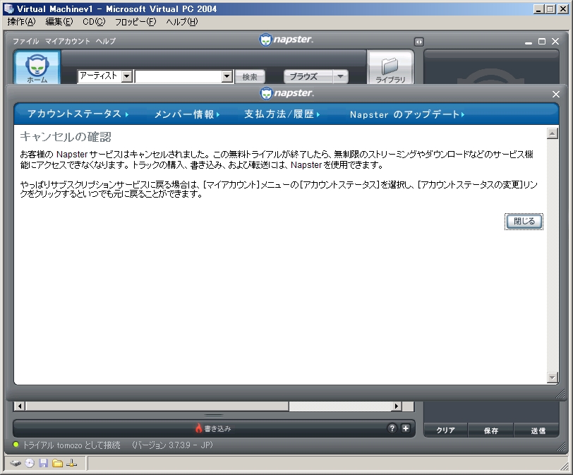 ダウンロードされたファイルはWMAファイルでWindowsMediaPlayerで普通に再生できた。これでトライアルやめると駄目になるという案配かな。